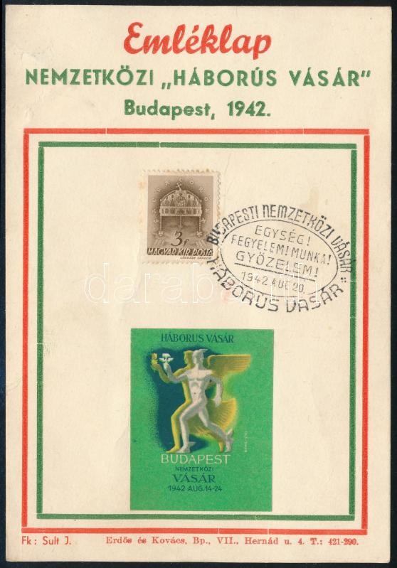 1942 Bp., Emléklap a Nemzetközi Háborús Vásár alkalmából https://www.darabanth.com/hu/335-Gyorsarveres/335.0/Mutargy-papirregiseg-egyeb/Okmanyok~500017/1942-Bp-Emleklap-a-Nemzetkozi-Haborus-Vasar-alkalmabol~II1881015