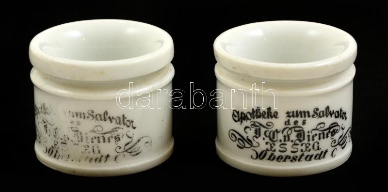 Leírás: cca 1880 Eszék a Megváltóhoz címzett patika két porcelán kenőcsös tégelye d: 4,5 cm Aphoteke zum Salvator Esegg pharmacy cream jar.