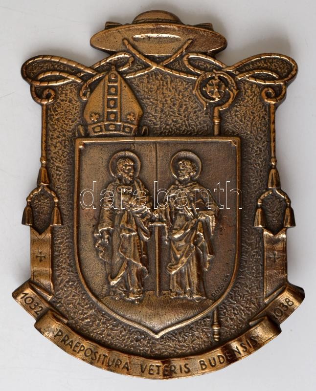 Bozó Gyula (1913-2004): Praepositura Veteris Budensis 1032-1038 / Az Óbudai Káptalan megalapításának emlékére készült nagyméretű bronz plakett. Jelzett. 27x21 cm