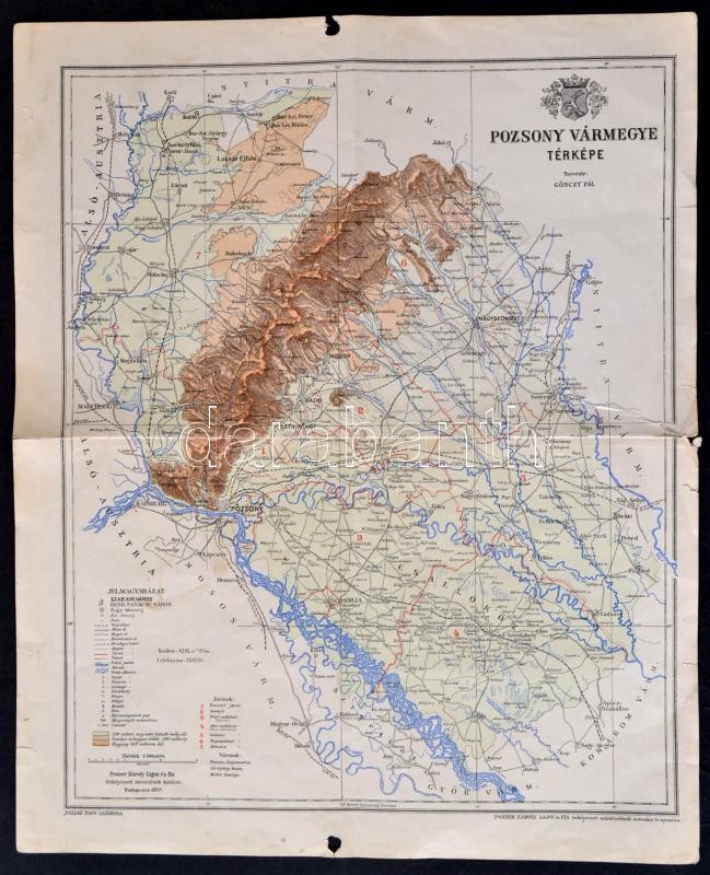 1897 Pozsony vármegye térképe, tervezte: Gönczy Pál, kiadja: Posner Ká... https://www.darabanth.com/hu/335-Gyorsarveres/335.0/Mutargy-papirregiseg-egyeb/Terkepek~500033/1897-Pozsony-varmegye-terkepe-tervezte-Gonczy-Pal-kiadja-Posner-Karoly-es-Fia-hajtott-s~II1881050