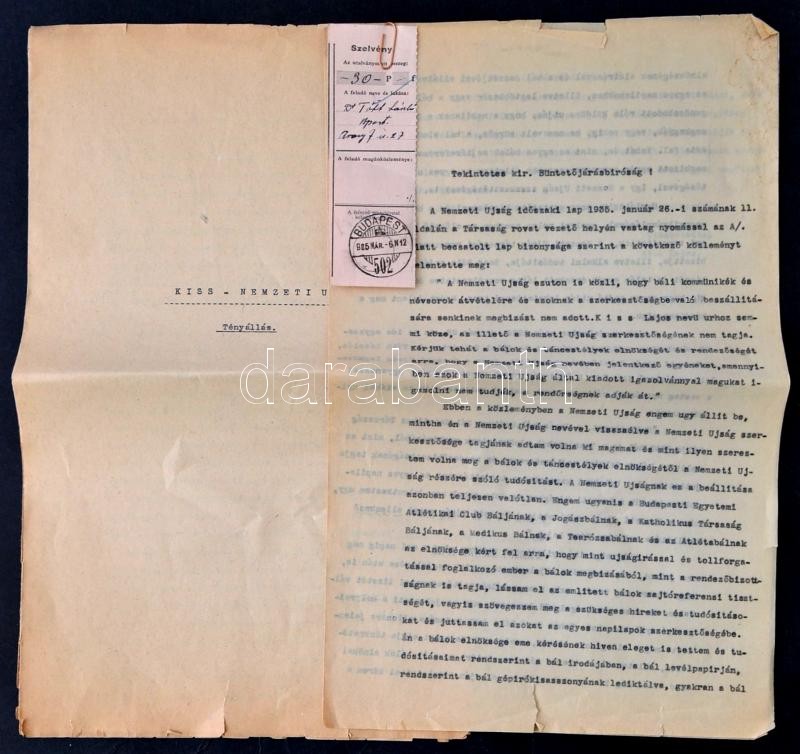 1935 Kiss Lajos Atlétikai Club-, Jogász-, Medikus -, Katholikus Társaság-, Tearózsa- és Atlétabál rendezőbizottsági tag, és az említett bálok sajtóreferense panasza közte és a Nemzeti Újság közötti ügyben