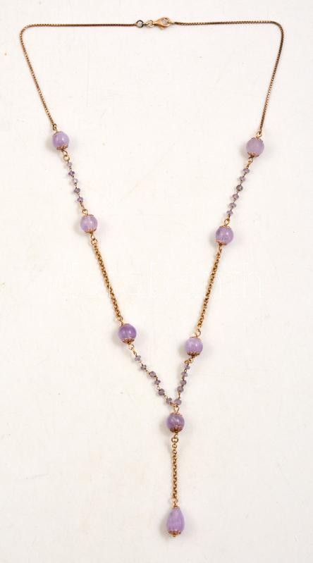 Leírás: Aranyozott ezüst(Ag) ametisztköves nyaklánc, jelzett, h: 64 cm, bruttó: 21 g