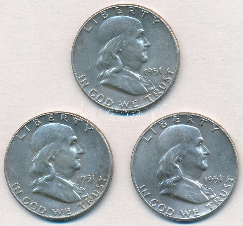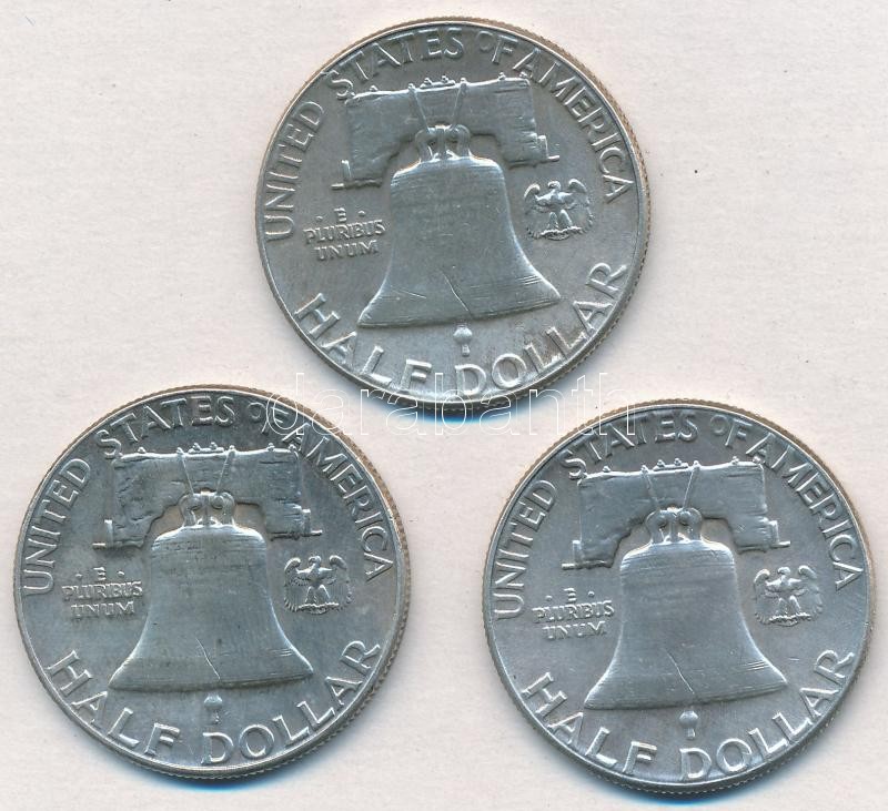 Leírás: Amerikai Egyesült Államok 1951. 1/2$ Ag "Franklin" (3x) T:2