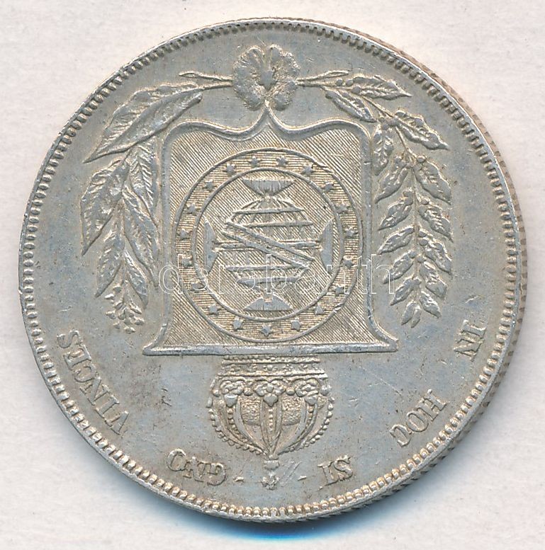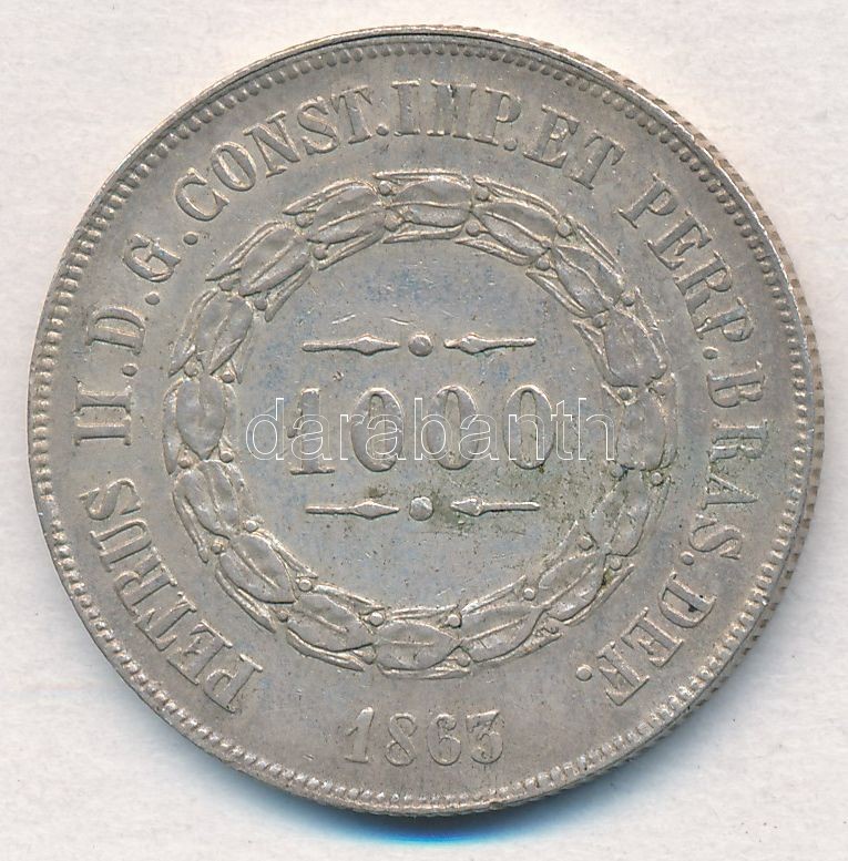 Brazil / Empire ... https://www.darabanth.com/hu/335-Gyorsarveres/335.0/Numizmatika/Kulfoldi-fem-es-ezustpenzek~1500013/Brazilia-Csaszarsag-1863-1000R-Ag-II-Peter-T2-Brazil-Empire-1863-1000-Reis-Ag-Pedro~II1879088