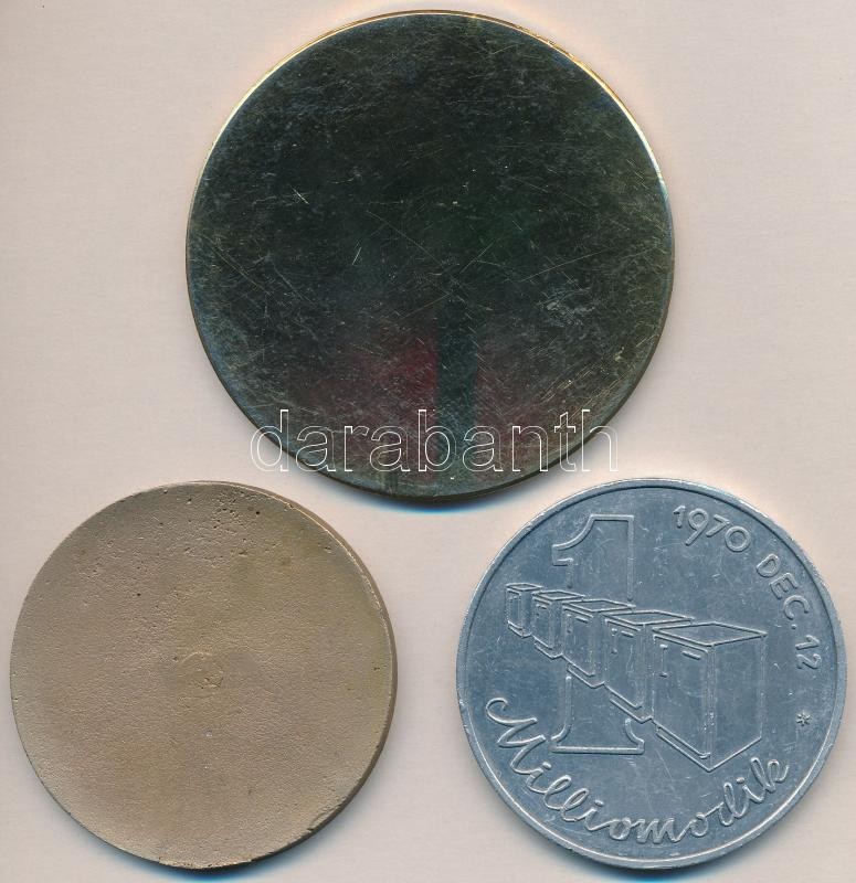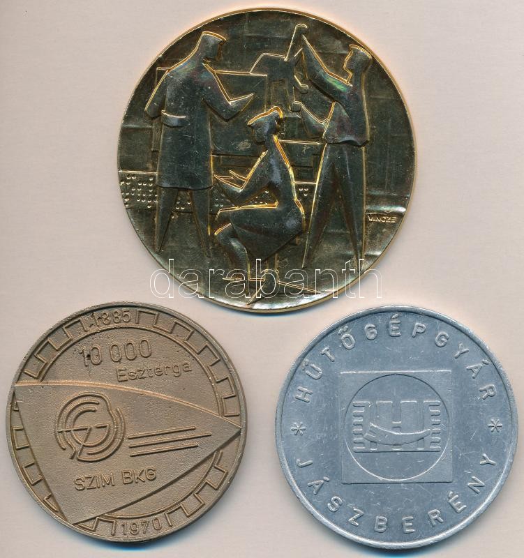 Leírás: 1970. "Hűtőgépgyár - Jászberény / Milliomodik" Al emlékérem (65mm) + "SZIM BKG 10.000 Eszterga" Br emlékérem (64mm) + Vincze Dénes (1914-1972) ~1960. Aranyozott bronz szocreál plakett (80mm) T:2
