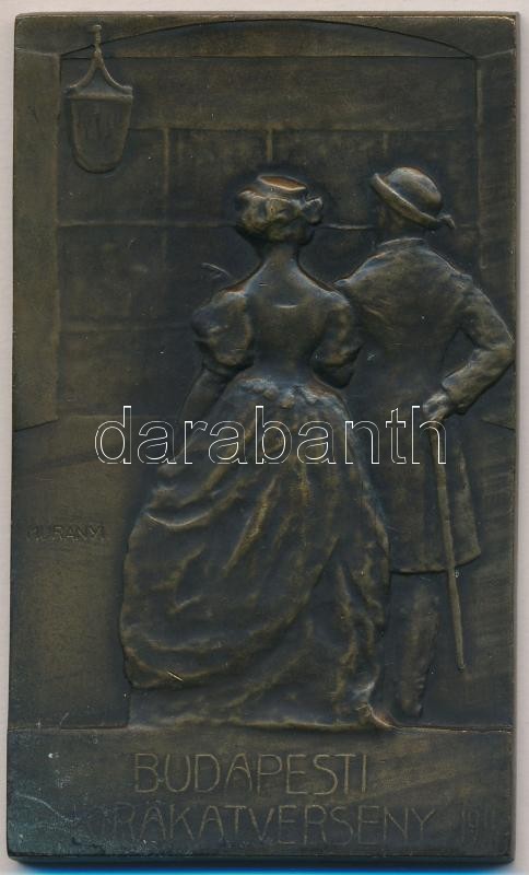 Leírás: Murányi Gyula (1881-1920) 1911. "Budapesti Kirakatverseny 1911" egyoldalas Br plakett (61x101mm) T:1-,2
