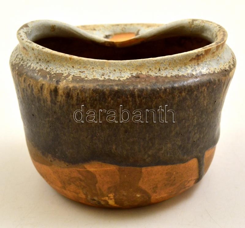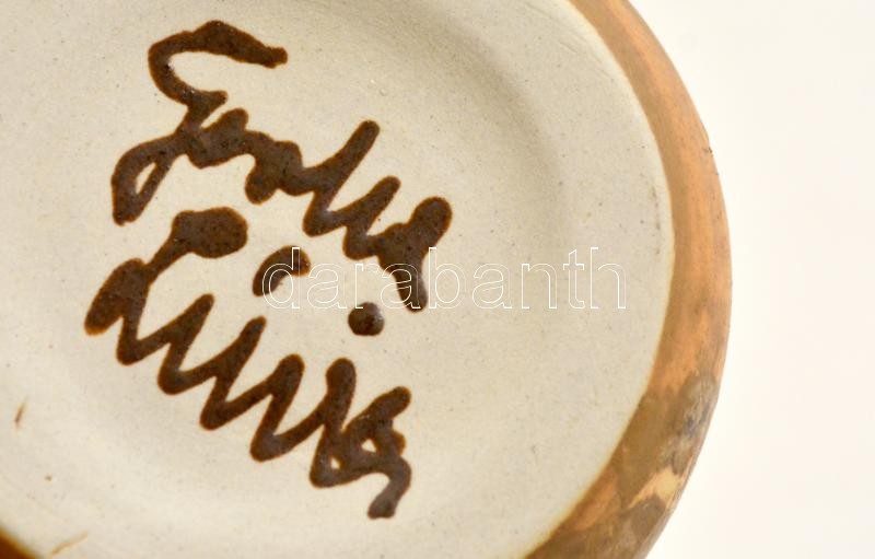 Leírás: Gorka Lívia (1925-2011): Amorf edény. Festett, mázas kerámia, jelzett, 8x9 cm