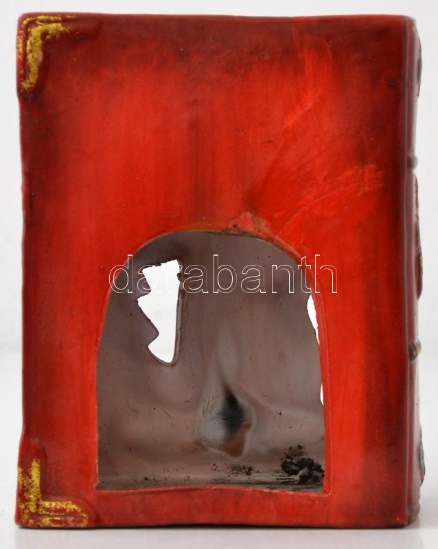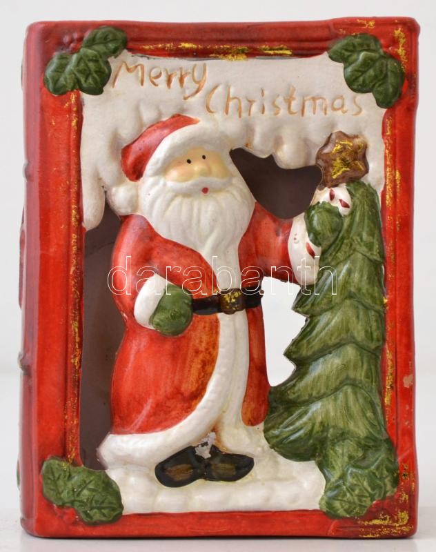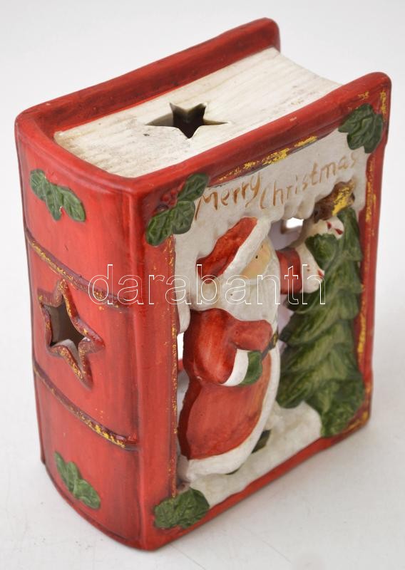 Leírás: Karácsonyi könyv alakú gyertyatartó, festett, mázas kerámia, jelzés nélkül, apró repedéssel, m: 16 cm