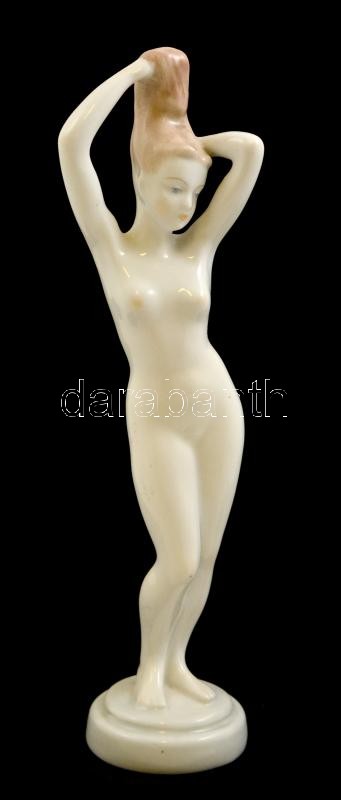 Leírás: Aquincumi fésülködő porcelán akt, kézzel festett, jelzett, hibátlan, m: 23,5 cm