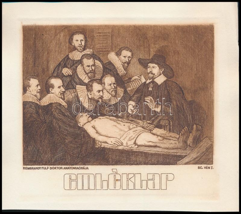 Vén Zoltán (1941-): Dr. Tulp anatómiája rézkarc-papír kis szériás emlé... https://www.darabanth.com/hu/336-Gyorsarveres/336.0/Festmenyek-es-grafikak/Ex-libris-es-kisgrafika~500002/Ven-Zoltan-1941-Dr-Tulp-anatomiaja-rezkarc-papir-kis-szerias-emleklapon-15x21-cm~II1815202