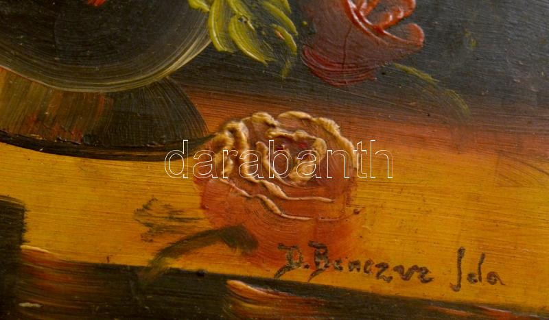 Leírás: Benczúr jelzéssel: Virágcsendélet. Olaj, karton, üvegezett keretben, 23×19 cm