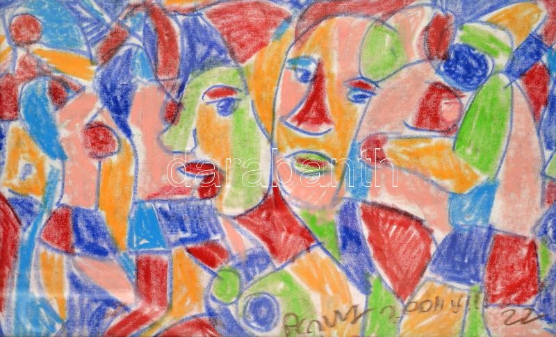 Leírás: Cs. Németh Miklós (1934-2012): Sokalakos, pasztell, vászon, jelzett, 41×56 cm