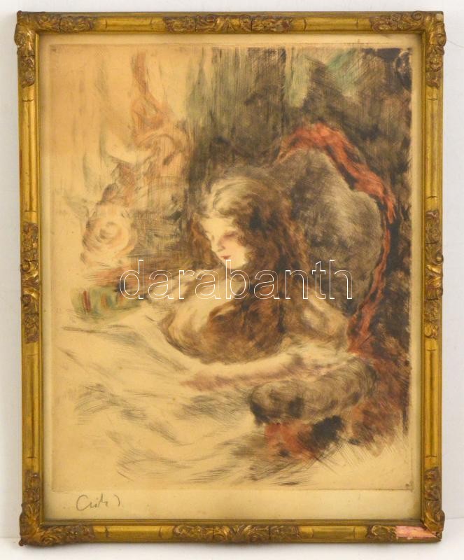 Csók István (1865-1961): Olvasó nő, színezett rézkarc, papír, jelzett,... https://www.darabanth.com/hu/336-Gyorsarveres/336.0/Festmenyek-es-grafikak/Festmenyek-es-grafikak~500001/Csok-Istvan-1865-1961-Olvaso-no-szinezett-rezkarc-papir-jelzett-uvegezett-fa-keretben~II1870856
