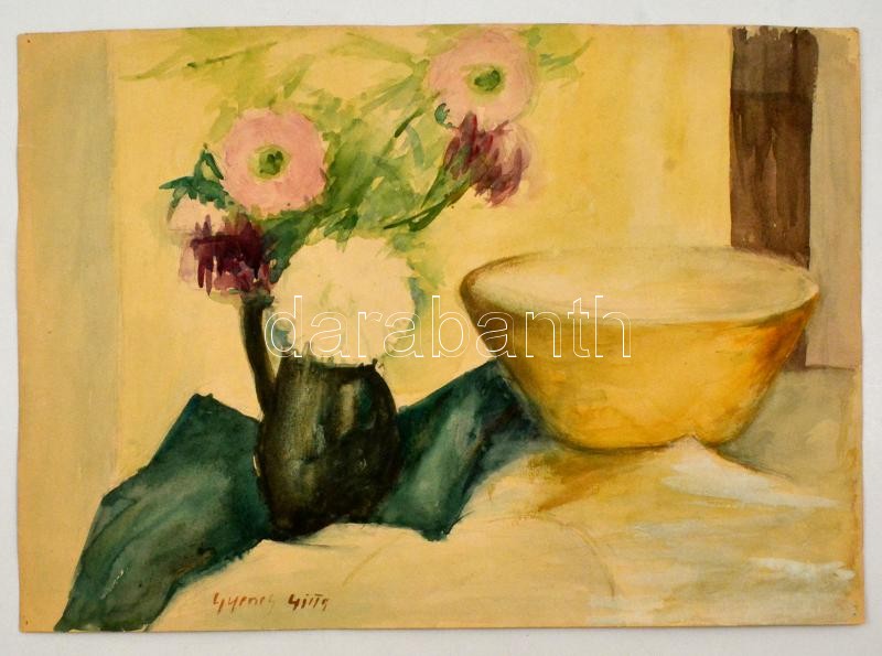 Leírás: Gyenes jelzéssel: Csendélet. Akvarell, papír, 30×42 cm