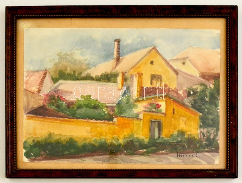 Herrer jelzéssel: Házak. Akvarell, papír, üvegezett keretben, 20×28 cm https://www.darabanth.com/hu/336-Gyorsarveres/336.0/Festmenyek-es-grafikak/Festmenyek-es-grafikak~500001/Herrer-jelzessel-Hazak-Akvarell-papir-uvegezett-keretben-20C39728-cm~II1839850