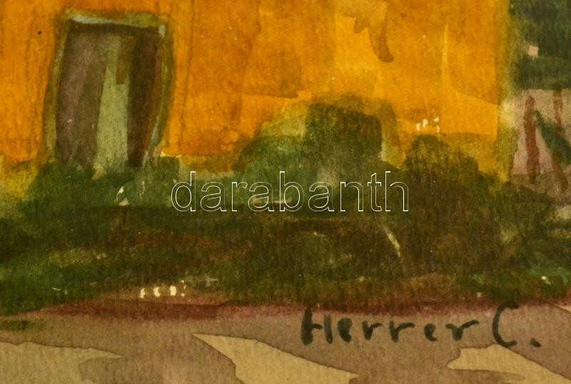 Leírás: Herrer jelzéssel: Házak. Akvarell, papír, üvegezett keretben, 20×28 cm