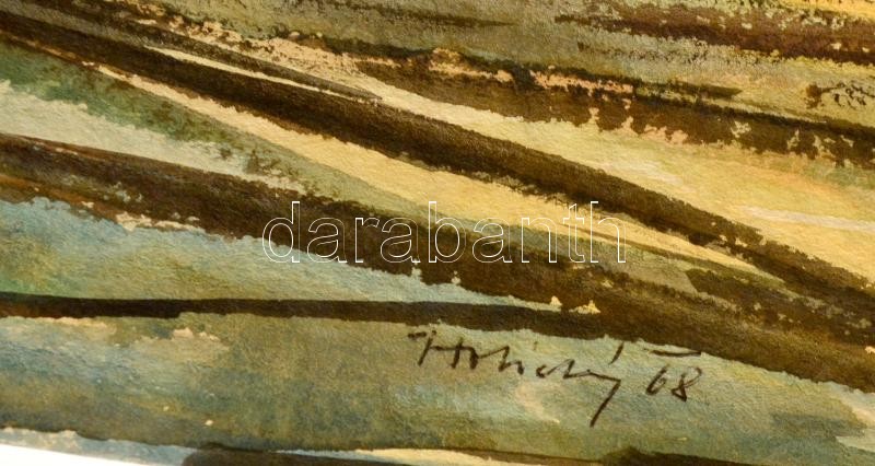Leírás: Holichy jelzéssel: Dombos táj. Akvarell, papír, 29×63 cm