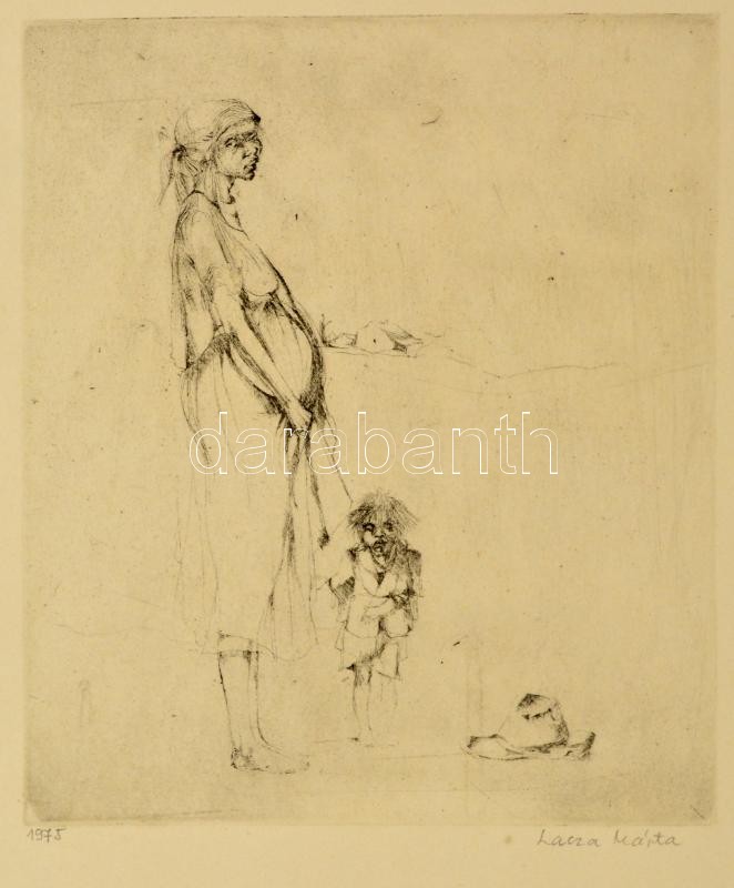 Lacza Márta (1946- ): Szegénység. Rézkarc, papír, jelzett, 16×14,5 cm https://www.darabanth.com/hu/336-Gyorsarveres/336.0/Festmenyek-es-grafikak/Festmenyek-es-grafikak~500001/Lacza-Marta-1946-Szegenyseg-Rezkarc-papir-jelzett-16C39714-5-cm~II1885911