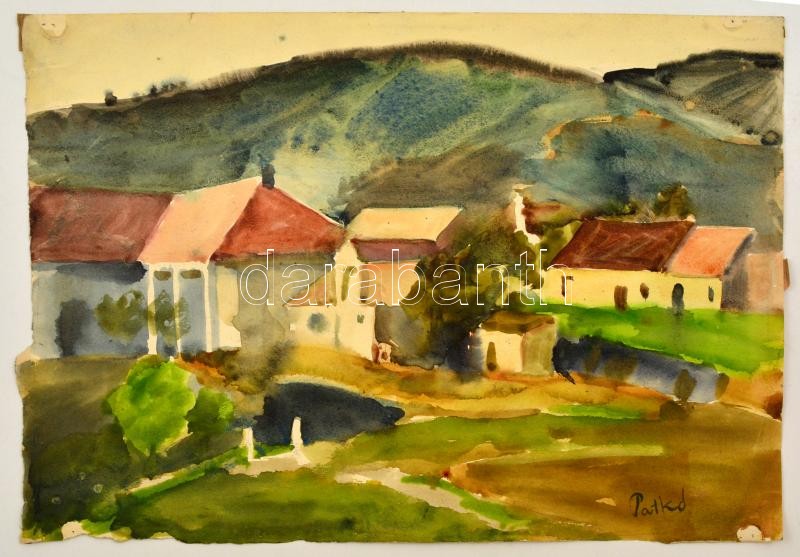 Patkó jelzéssel: Kilátás a falura. Akvarell, papír, 30×42 cm https://www.darabanth.com/hu/336-Gyorsarveres/336.0/Festmenyek-es-grafikak/Festmenyek-es-grafikak~500001/Patko-jelzessel-Kilatas-a-falura-Akvarell-papir-30C39742-cm~II1887102