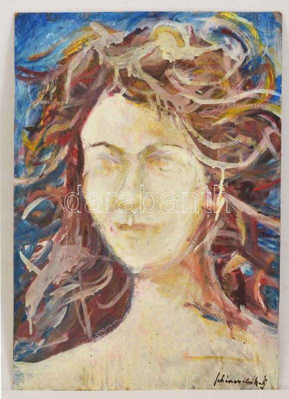 Leírás: Schéner jelzéssel: Női portré. Olaj, farost, 54×38 cm
