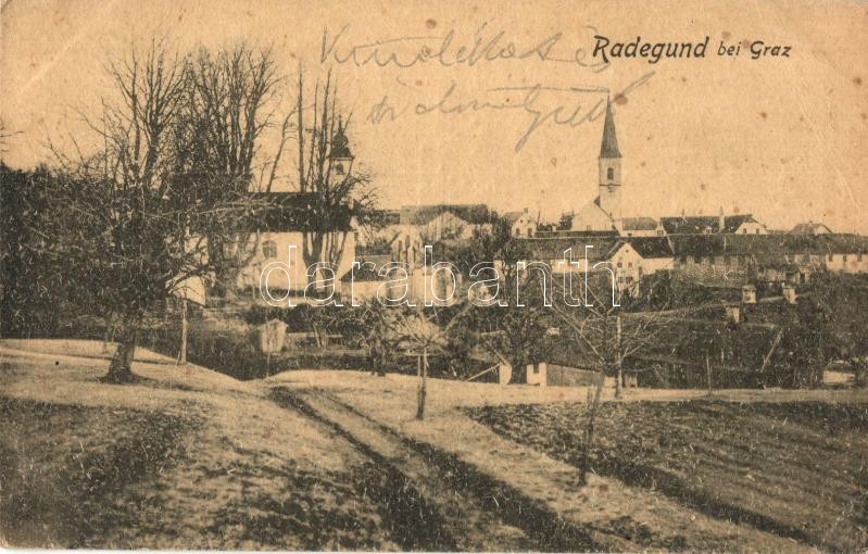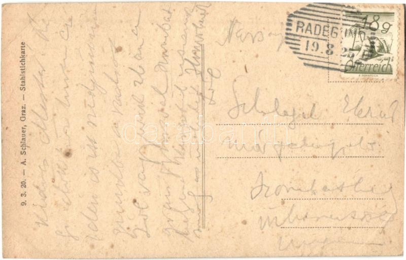 Leírás: Sankt Radegund bei Graz, churches. A. Schlauer Stahlstichkarte (EB)