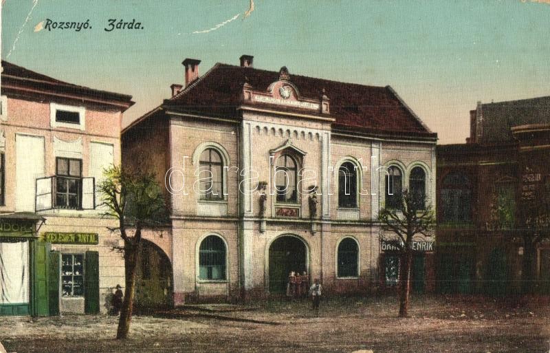 Leírás: Rozsnyó, Roznava; Irgalmas nővérek zárdája, Kelemen Antal üzlete. Kiadja Fuchs József / Sisters of Mercy convent, nunnery, shops (szakadás / tear)