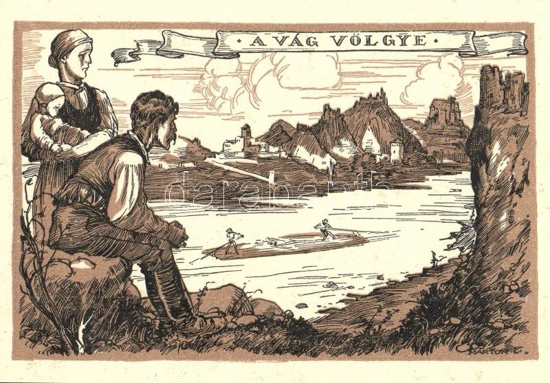 Leírás: A Vág völgye, vize fája, magyar vágya. Kiadja a Magyar Nemzeti Szövetség / Hungarian irredenta art postcard; Povazie s: Márton L