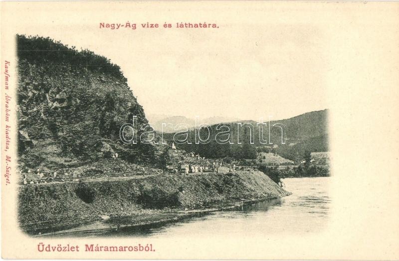 Leírás: Ökörmező, Volove Polje, Mizhhirya; Nagy-Ág víze és láthatára (Máramaros). Kiadja Kaufmann Ábrahám / Rika riverbank