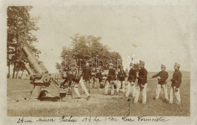 1909 24 cm Mörser Geschoss 134 kg / Osztrák-magyar katonák gyakorlaton 24 cm kaliberű mozsárral / Austro-Hungarian K.u.K. military soldiers on field practice with 24 cm caliber mortar, cannon. photo