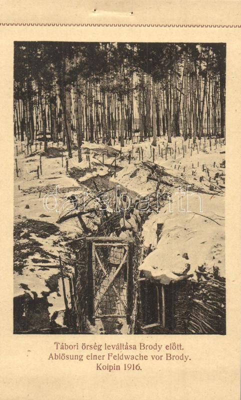 1916 Tábori őrség leváltása Brody előtt. A 19. gyalogezred hadialbumából. Ferstl Gedö fényképész / Ablösung einer Feldwache vor Brody. Aus dem Kriegsalbum des Inf. Reg. Nr. 19. / WWI Austro-Hungarian K.u.K. military, change of the field guards in the trenches by Brody (perforált / perforated)