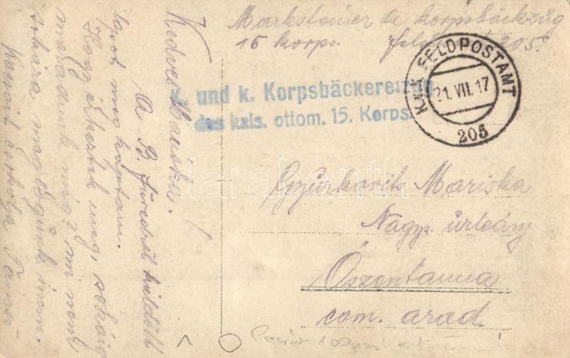 Leírás: 1917 Megsemmisült osztrák-magyar ágyú / WWI Austro-Hungarian K.u.K. military, destroyed cannon. photo + K.u.K. Korpsbäckereizug des 15. Korps Feldpostamt 205 (EK)