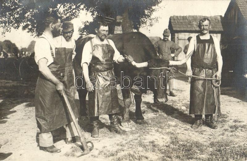Wladimir Wolinskij, Volodymyr-Volynskyi; Első világháborús osztrák-magyar tábori konyha mészárosai / WWI K.u.K. military, butchers of the field kitchen with ox. photo
