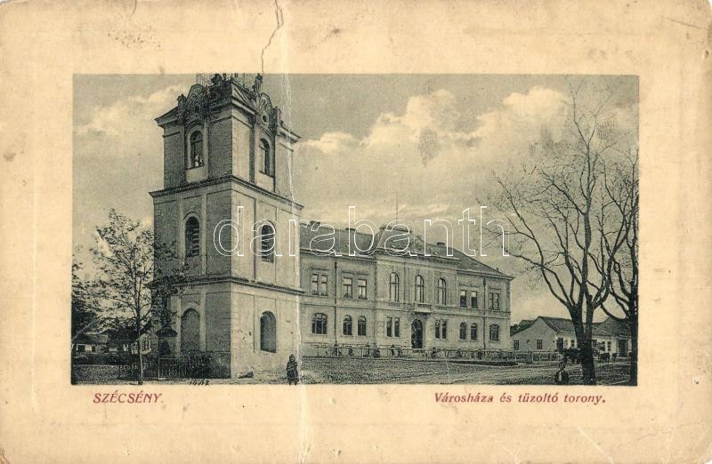 1912 Szécsény, Városháza és a tűzoltó torony. W. L. Bp. 4731. Kiadja K... https://www.darabanth.com/hu/336-Gyorsarveres/336.0/Kepeslapok/Magyarorszag~1000005/1912-Szecseny-Varoshaza-es-a-tuzolto-torony-W-L-Bp-4731-Kiadja-Kormendy-Geza-b~II1889868