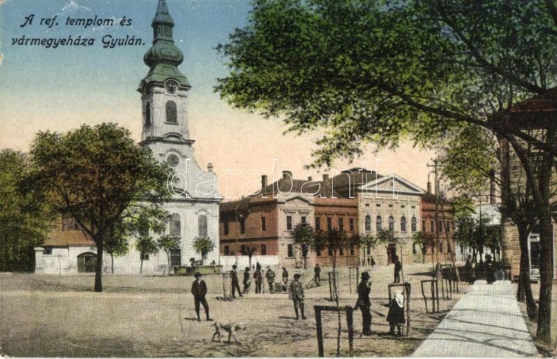 Leírás: Gyula, Református templom, vármegyeház (EK)