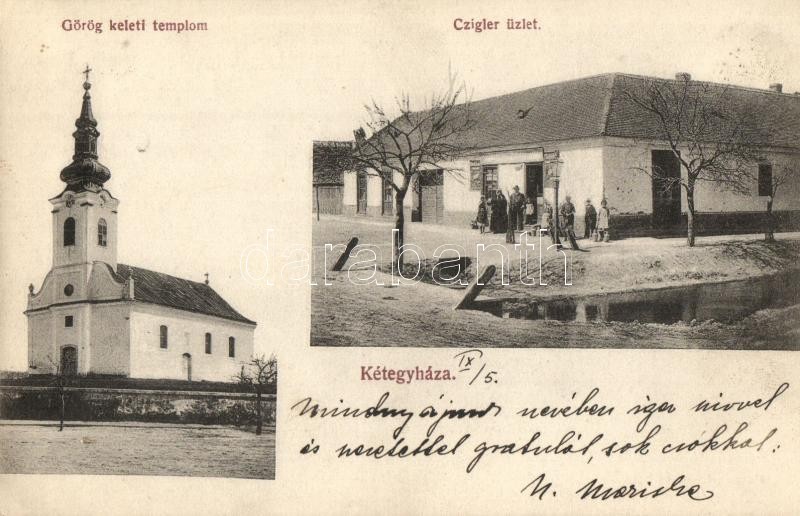 Leírás: Kétegyháza, Görögkeleti ortodox templom, Czigler Lajos üzlete és saját kiadása