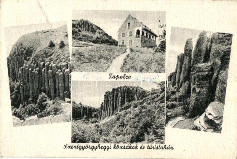 Tapolca, Szent György-hegyi kőzsákok és turistaház, bazaltoszlopok (b) https://www.darabanth.com/hu/336-Gyorsarveres/336.0/Kepeslapok/Magyarorszag~1000005/Tapolca-Szent-Gyorgy-hegyi-kozsakok-es-turistahaz-bazaltoszlopok-b~II1885483