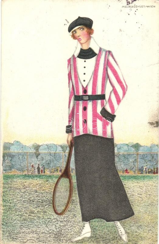 Tennis lady. B.K.W.I. 187-4. s: Mela Koehler (EK) https://www.darabanth.com/hu/336-Gyorsarveres/336.0/Kepeslapok/Muveszlapok~1000045/Tennis-lady-BKWI-187-4-s-Mela-Koehler-EK~II1887049