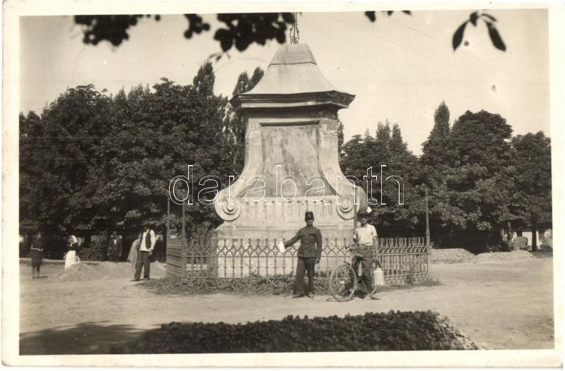 Leírás: 1943 Sajkásgyörgye, Gyurgyevó, Durdevo; emlékmű, katona, férfi kerékpárral / monument, soldier, man with bicycle. photo
