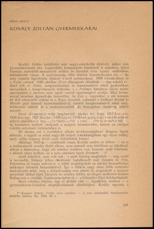 Leírás: 2 dedikált különlenyomat: Bajomi Lázár Endre: Ady endre baklövése. 1980. 5p.; Eösze László: Kodály Zoltán gyermekkarai. Bp., 1957. Akadémiai 26p.