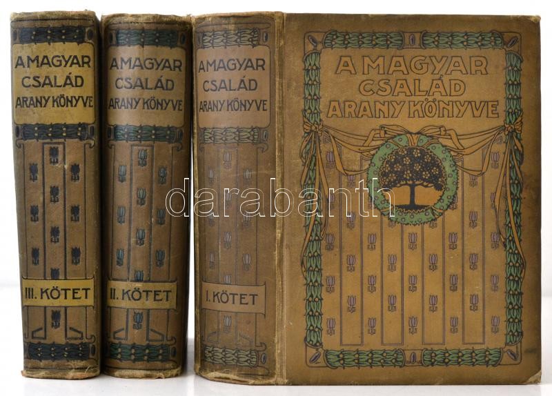 A magyar család aranykönyve. Útmutató a családi élet minden ügyében. I-III. kötet. I. kötet: Egészség, lakás, ruházkodás. II. kötet: Családi nevelés és a családi élet külső vonatkozásai. III. kötet: A család gazdasági élete. Háztartás. A konyha. A család élelmezése. Házi állatok. Kertészet. Kézimunka. Házi ipar. A kötetek szecessziós díszeit, előzékeit és kötését Basch Árpád tervezte. Bp., 1909-1911, Athenaeum Irodalmi és Nyomdai Rt., VIII p.+ 8 t. (benne Basch Árpád rajzai után készült 5 egész oldalas kromolitográfia)+704 p+11 t.;VII+696 p. +2 kihajtható melléklet; VII p. + 573 p. + 17 t. +1 kihajtható melléklet. Mindhárom kötetben számos színes tábla és melléklet, valamint szövegközti ábrákkal, fotókkal, rajzokkal illusztrálva. Egységes, díszesen aranyozott, festett egészvászon díszkötésben, kopott borítókkal, kopott gerincekkel, az I. kötet lapszélein folttal, a I. és II. kötet gerincein kis sérülésekkel.