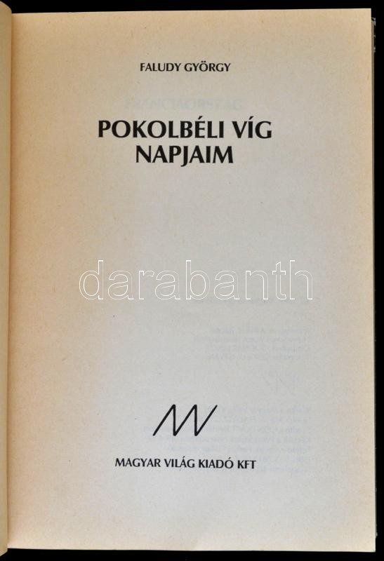Faludy György: Pokolbeli víg napjaim. Bp., 1989. Magyar Világ Kiadó. ... https://www.darabanth.com/hu/336-Gyorsarveres/336.0/Konyvek/Konyvek-Egyeb-ritkasagok~2000018/Faludy-Gyorgy-Pokolbeli-vig-napjaim-Bp-1989-Magyar-Vilag-Kiado-Kiadoi-papirkotesben-~II1889725