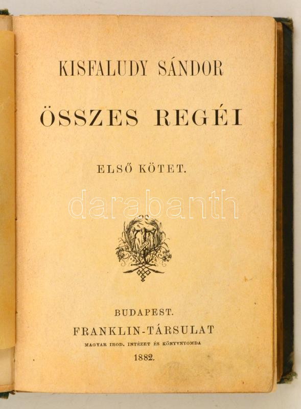 Kisfaludy Sándor összes regéi. I.-II. egybe kötve. Bp., 1882. Franklin... https://www.darabanth.com/hu/336-Gyorsarveres/336.0/Konyvek/Konyvek-Egyeb-ritkasagok~2000018/Kisfaludy-Sandor-osszes-regei-I-II-egybe-kotve-Bp-1882-Franklin-Rezmetszetu-cimkeppe~II1888213