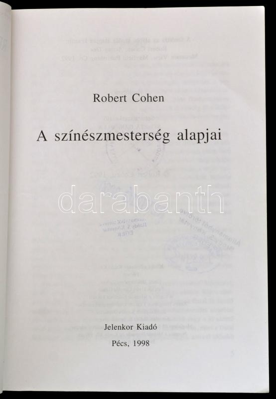 Robert Cohen: A színészmesterség alapjai. Pécs, 1998. Jelenkor. Volt k... https://www.darabanth.com/hu/336-Gyorsarveres/336.0/Konyvek/Konyvek-Epiteszet-muveszet~2000006/Robert-Cohen-A-szineszmesterseg-alapjai-Pecs-1998-Jelenkor-Volt-konyvtari-peldany~II1860648