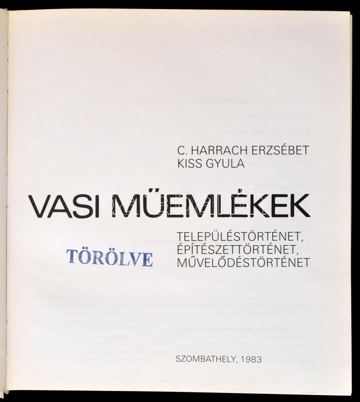 C. Harrach Erzsébet-Kiss Gyula: Vasi műemlékek. Településtörténet, épí... https://www.darabanth.com/hu/336-Gyorsarveres/336.0/Konyvek/Konyvek-Utazas-helytortenet~2000001/C-Harrach-Erzsebet-Kiss-Gyula-Vasi-muemlekek-Telepulestortenet-epiteszettortenet-mC5~II1889688