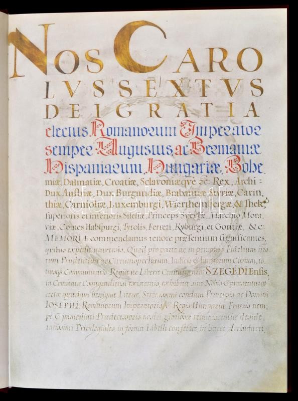 Szeged szabad királyi város címeres kiváltságlevele. 1719. Szerk.: Dr. Csáky Imre. Bp.-Szeged, 2002, HÍD Marketing és Térképészeti Kft.-Csongrád Megyei Levéltár. Kiadói bársony-kötés. Facsimle kiadás. Számozott (1000/269.) példány.