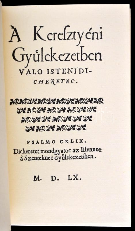 Huszár Gál: A keresztyéni gyülekezetben való isteni dicséretek./ Kálmáncsehi Márton: Reggeli éneklések. 1560-1561. A kísérő tanulmányt Borsa Gedeon írta. A fakszimile szövegét Varjas Béla gondozta. Bibliotheca Hungarica Antiqua XII. kötet. Bp.,1983, Akadémiai Kiadó. Kiadói egészbőr-kötés, kiadói kartontokban, jó állapotban.