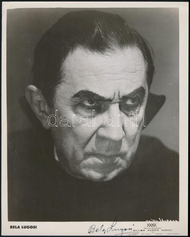 cca 1930-1940 Photo of Béla Lugosi (1882-1956) Hungarian born American actor, Count Dracula, with original signature of Béla Lugosi, William Morris Agency, 25x20 cm
