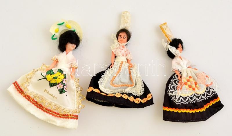 Leírás: 3 db népviseletbe öltöztetett alvós baba, h: 16 cm
