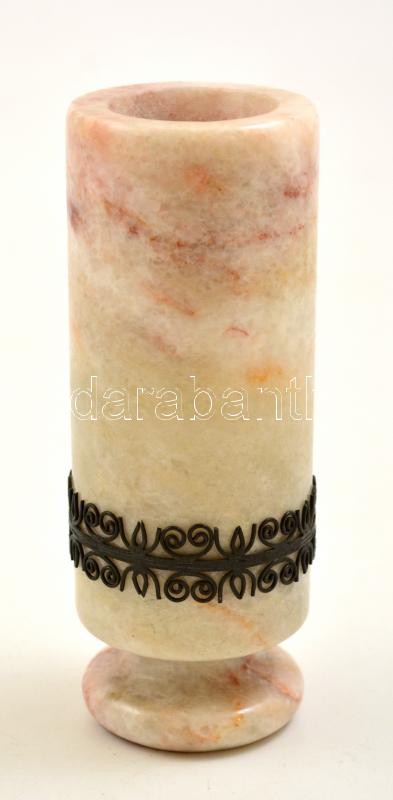 Alabástrom váza, fém rátéttel, m: 15,5 cm