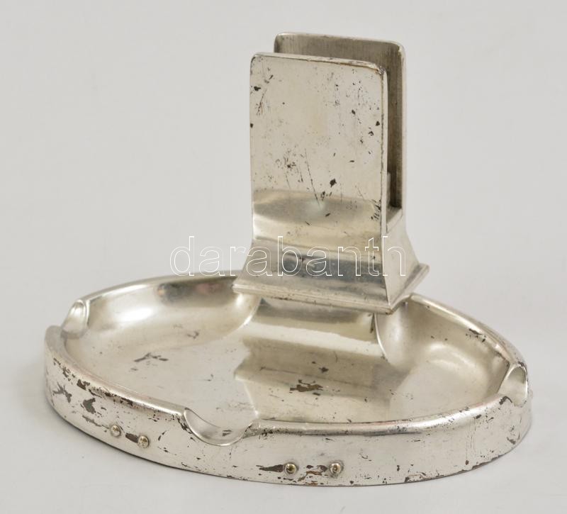Leírás: Berndorf alpakka gyufatartós hamuzó, jelzett, kopott, 15×12 cm, m:9,5 cm